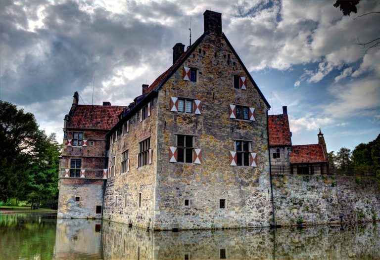 Die Wasserburg Vischering in Lüdinghausen ist eine der ältesten und besterhaltenen Burgen im Münsterland. Sie wurde im Jahr 1580 im Baustil der Renaissance neu errichtet und stand für viele Hundert Jahre leer. Die Anlage ist malerisch schön auf zwei Inseln gelegen, wobei eine die Vorburg und eine die Kernburg beherbergt. Der Weg vom Parkplatz zur Burg erfolgt über eine hübsche Allee mit altem Baumbestand. Der Besucher erreicht die Hauptburg über eine Brücke und kann kostenlos bis auf den Burghof gelangen. Gegen einen geringen Eintrittspreis von aktuell 2,50 EUR (für Erwachsene, Kinder und Gruppen sind günstiger) kann die Burg täglich außer montags besichtigt werden. Zur Besichtigung zählen Säle, Foltergeräte, die Küche, eine Amtsstube und das Münsterlandmuseum, welches in der Burg untergebracht ist. Die Vorburg beherbergt außerdem ein kleines Café, welches zum Verweilen einlädt und einen Tag auf der Burg abrundet.